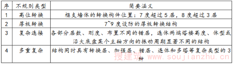 表4:具有下列某一项不规则的高层建筑工程 (不论高度是否大于表1)