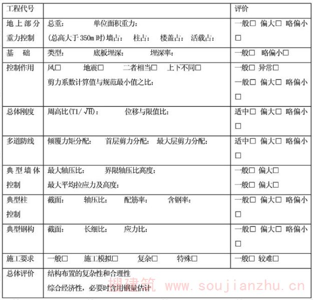 表11:超限高层建筑结构设计质量控制信息表(高度和规则性超限)
