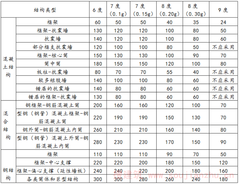 注:平面和竖向均不规则(部分框支结构指框支层以上的楼层不规则),其高度应比表内数值降低至少10%。