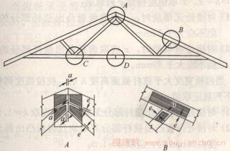 D.2.6 在屋脊节点处(图D.1.2中钉板C处),杆件间的连接验算应按下列规定进行: