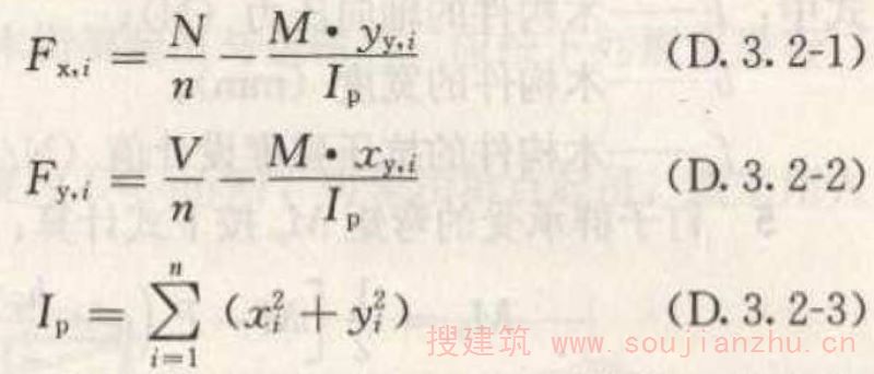 7 钉子群中钉子i的验算应根据轴向压力F x,n 和弯矩M p ,按本规范第D.3.2条规定的方法进行。