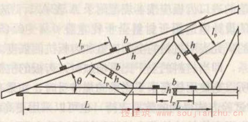 2 腹杆与上弦杆之间的角度45°<θ<75°时,应取K red =0.75;