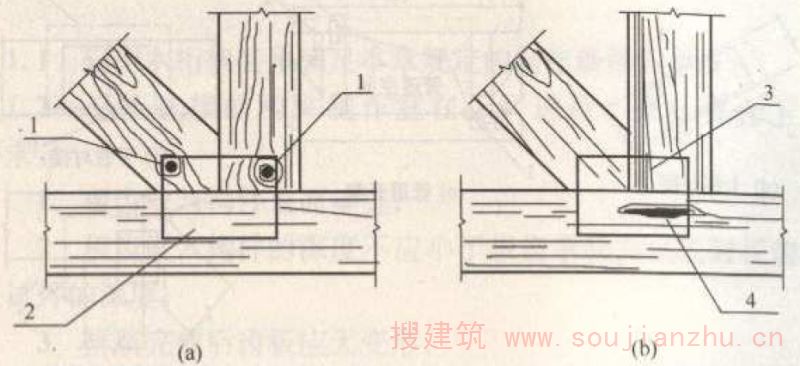 3 木构件端部剪力由构件间的摩擦力抵消,钉板不承受剪力。