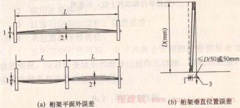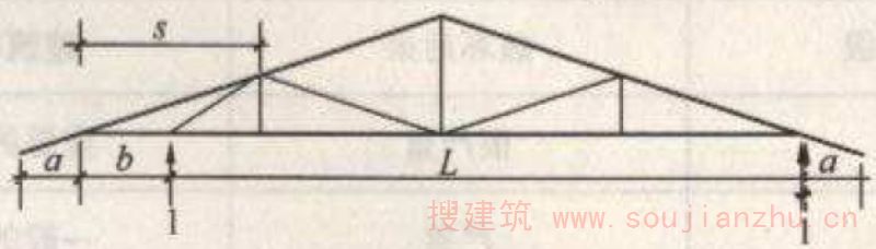 2 当桁架跨度为6m<L≤9m时,桁架可采用两点起吊,起吊点之间距离应为L/2;