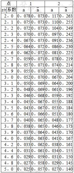 表B.0.3 圆形面积上均布荷载作用下中点的附加应力系数a与平均附加应力系数