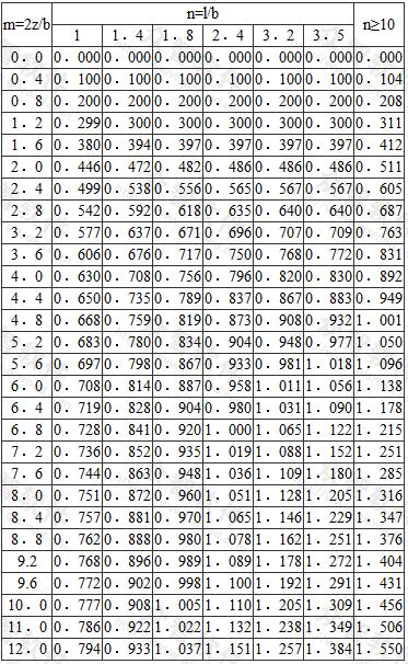 表B.0.1-2 矩形面积上均布荷载作用下角点平均附加应力系数