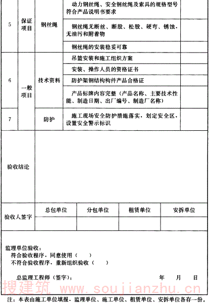 6 主要部件及提升机构的合格证。