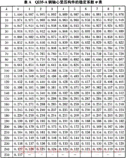 附录A Q235-A钢轴心受压构件的稳定系数