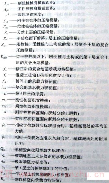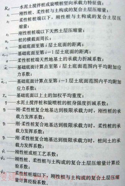 2.1.3、2.1.4桩的刚柔是相对的。桩的刚度不仅取决于桩体模量,还与桩土模量比和桩的长径比有关。在工程应用上,常将各种混凝土桩、钢桩称为刚性桩,将水泥土搅拌桩、旋喷桩,石灰桩和灰土桩等称为柔性桩,而将由散体材料碎石形成桩和灰土桩等称为柔性桩,而将由散体材料碎石形成的碎石桩称为散体材料桩。散体材料桩与上述刚性桩和柔性桩的荷载传递特性具有较大区别。若采用刚性桩与散体材料桩形成刚-柔性桩复合地基,应重视散体材料桩的荷载传递特性。