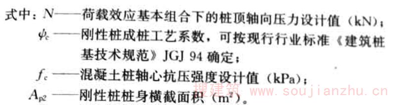 4.2.2 刚性桩应验算桩身承载力,混凝土桩轴心受压正截面受压承载力应符合下式要求: