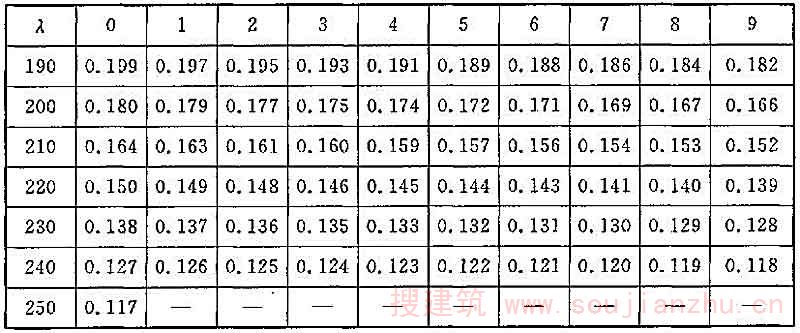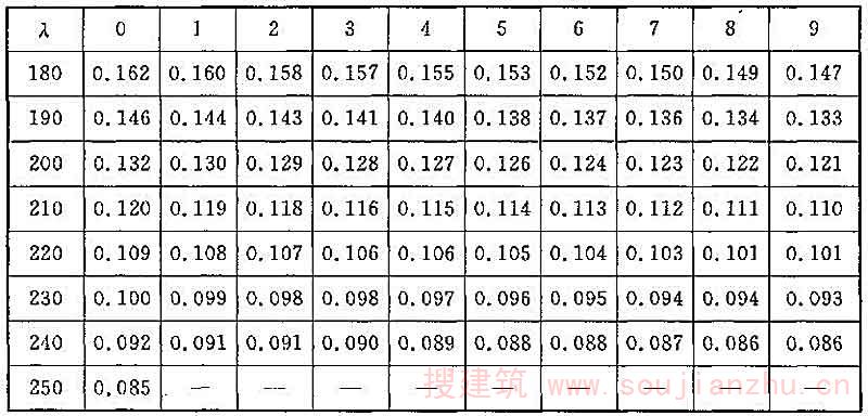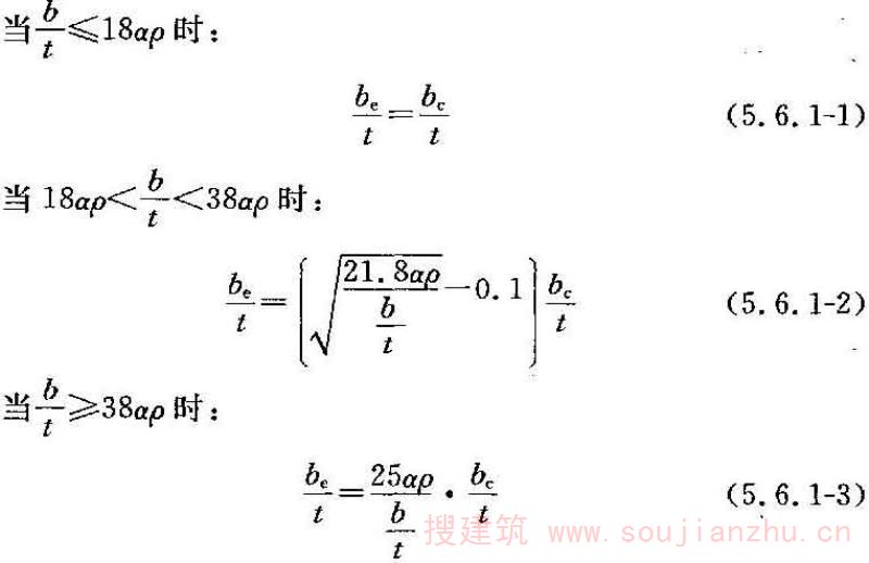 考虑受压板件利用屈曲后强度时,为了简化计算,将板件的宽度予以折减,折减后板件的计算宽度与板厚之比。