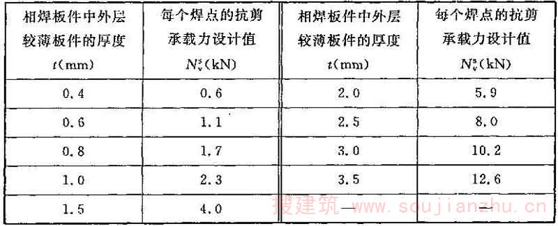 ——电阻点焊每个焊点的抗剪承载力设计值;