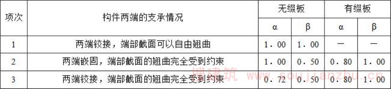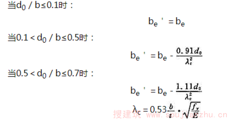 4.对三种不同的受压板件的有效宽厚比计算修改成以板组为计算单元,考虑相邻板件的约束影响,并采用统一的计算公式;