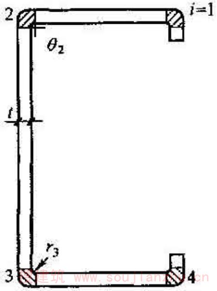 r i ——型钢截面上第i个棱角内表面的弯曲半径;