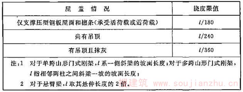 8.补充了多跨门式刚架体系中刚架柱的计算长度计算公式,补充了刚架梁垂直挠度限值、柱顶侧移限值等规定。