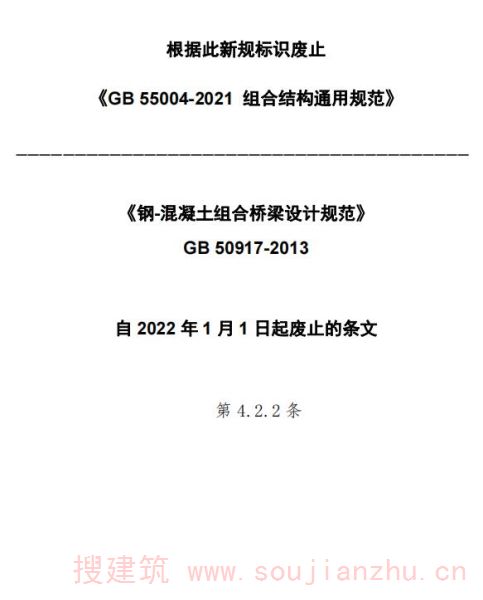 现批准《钢-混凝土组合桥梁设计规范》为国家标准,编号为GB 50917-2013,自2014年5月1日起实施。其中,第4.2.2条为强制性条文,必须严格执行。