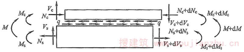 1 假定钢梁与混凝土之间无连接,混凝土桥面板在温度、收缩等作用下产生自由形变ε c 。