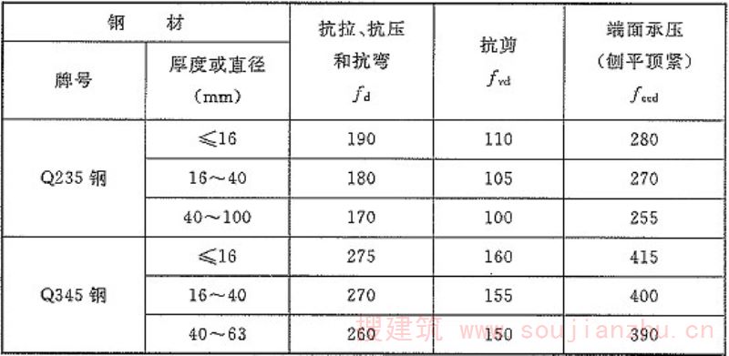 d ——钢材抗拉、抗压和抗弯强度设计值;