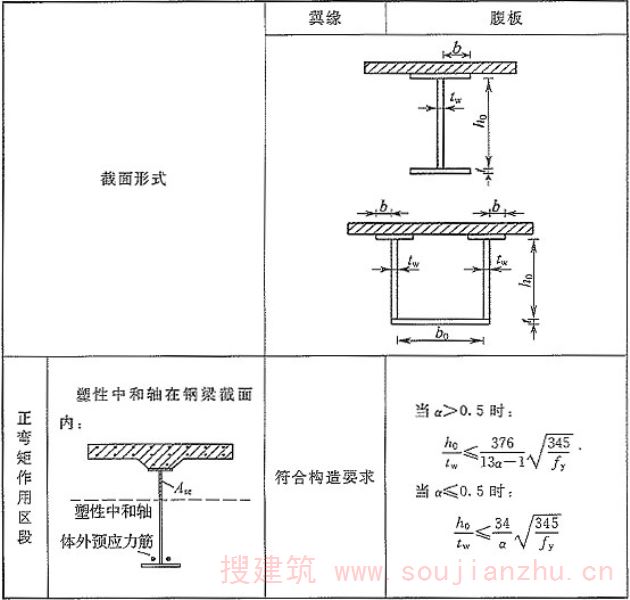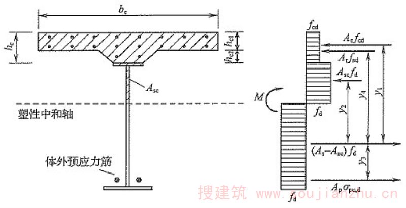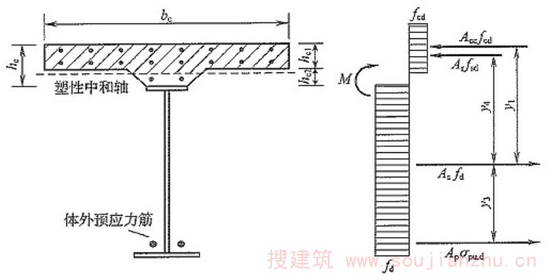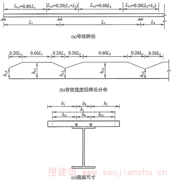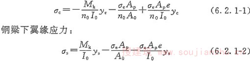 e的计算是基于整体和分离体的平衡方程、应变协调关系及钢和混凝土材料的本构关系推导而出,详细推导过程可查看条文说明第6.3.1条。 按照本规范公式对相关实验[参见AyyubB.M.《PrestressedCompositeGirdersUnderPositiveMoment》(《ASCEJournalofStructuralEngineering》,1990,116(11):2931-2951)和WojciechLorenc《BehaviorofCompositeBeamsPrestressedwithExternalTendons:ExperimentalStudy》(《JournalofConstructionalSteelResearch》,2006,62(12):1353-1366)]中的4根简支钢-混凝土组合梁在正弯矩作用下的跨中挠度进行验算(详见《钢-混凝土组合梁单调静力性能和设计理论研究报告》,《钢-混凝土组合桥梁设计规范》编制组,2010),结果表明,在P=0.2Pu、0.4Pu时,按本规范公式计算得到的结果与试验结果误差较小(在P=0.2Pu、0.4Pu时,挠度计算值和实验值的平均误差均分别为1.1%和0.9%,平均标准差分别为0.167和0.080)。