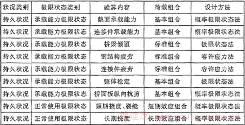1.0.3按照极限状态法进行设计是现行国家标准《工程结构可靠性设计统一标准》GB50153的基本要求。极限状态分为承载能力和正常使用两类。 承载能力极限状态涉及桥梁的结构安全,包括构件及连接强度、疲劳、结构整体稳定等;正常使用极限状态涉及桥梁的使用条件及耐久性,包括结构的变形、抗裂性等。桥梁结构满足两种极限状态。保证了结构的安全性、适用性及耐久性,使桥梁结构满足可靠性的要求,达到全部预定的功能。 以概率理论为基础的极限状态设计,在基准期内结构的可靠指标满足目标指标,结构安全是指在统计基准期中概率意义上的安全。