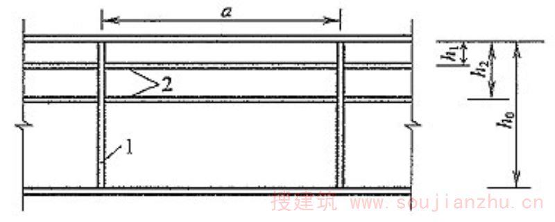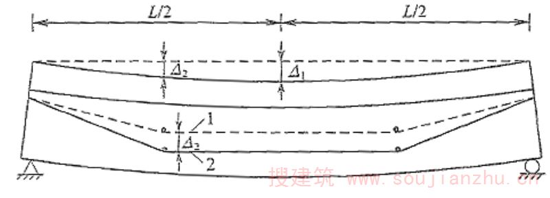Δ 2 ——靠近跨中截面转向点的竖向位移(mm),运用换算截面刚度按结构力学方法近似计算。