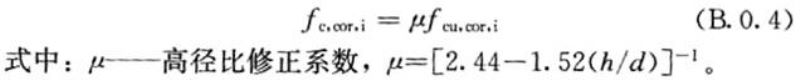 B.0.4 芯样试件标准高径比为0.95,最小高径比不得小于0.8,可按下式由被测芯样试件抗压强度推导出每一个标准高径比芯样试件的抗压强度