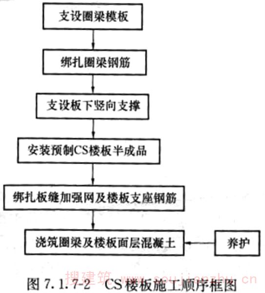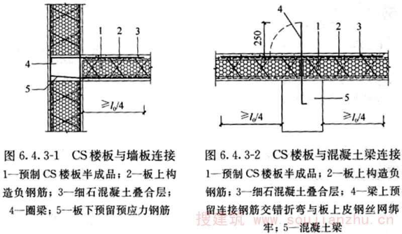钢丝网架板下采用预应力混凝土,板上浇筑混凝土叠合层而形成的复合楼板,简称CS楼板。