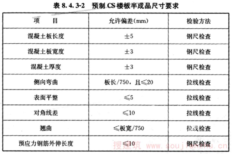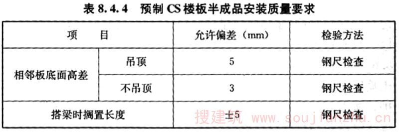 8.4.4 预制CS楼板半成品安装质量应符合表8.4.4的规定。