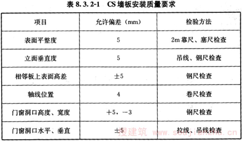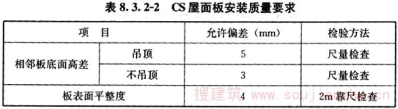 8.3.2 CS板安装质量及检测方法应符合表8.3.2-1、8.3.2-2的规定。