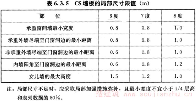 4.2.3 当采用CS墙板做女儿墙时,下层CS墙板的竖向边缘构件应伸至女儿墙顶,并与女儿墙压顶圈梁连接;女儿墙应按计算确定,且不宜大于本规程表6.3.5的规定。
