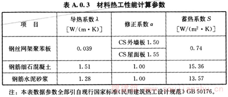 A.0.3 CS板材料热工指标技术参数应按表A.0.3取用。