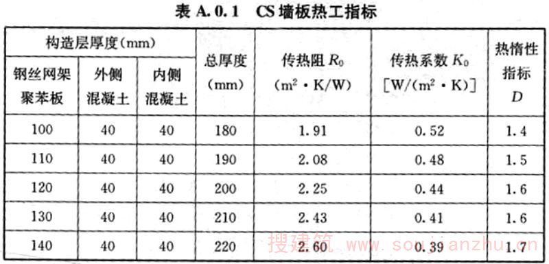 A.0.1 CS墙板热工指标应按表A. 0.1取用。