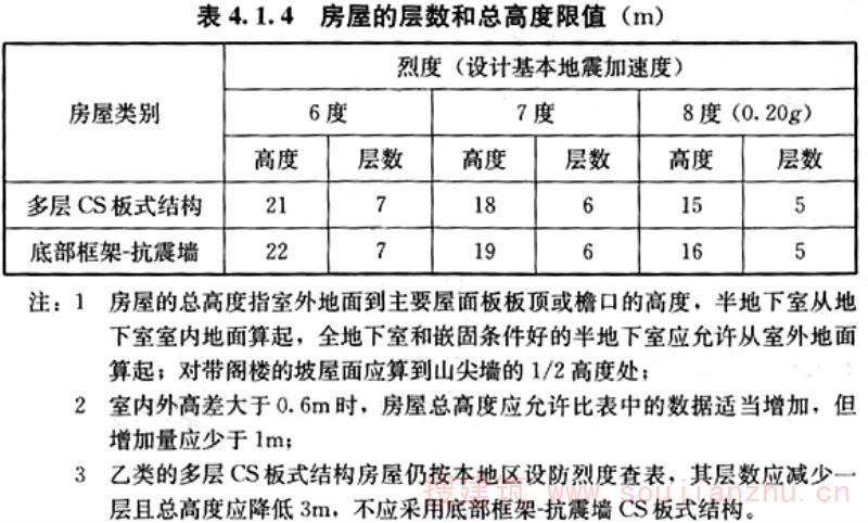 4.1.5 CS板式结构房屋的层高不宜超过3.5m,底部框架-抗震墙房屋的底部层高不应超过4.5m。