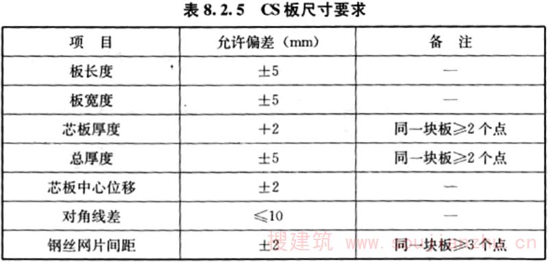 8.2.5 CS板外观尺寸应符合表8.2.5的规定。