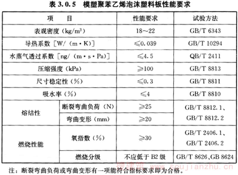 3.0.5 CS板芯板采用模塑聚苯乙烯泡沫塑料板时,其性能应符合表3.0.5的规定;CS承重墙板的芯板厚度不宜小于100mm,CS楼板、屋面板的芯板厚度不宜小于70mm,CS板构件的芯板厚度不宜大于200mm;CS屋面板、外墙板的芯板厚度尚应符合国家建筑节能设计标准的规定,CS屋面板、墙板的热工指标应按本规程附录A取用。