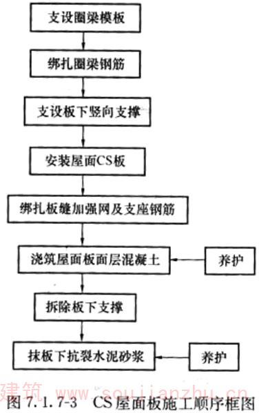钢丝网架板上浇筑混凝土,板下喷(抹)抗裂水泥砂浆或细石混凝土而形成的复合屋面板,简称CS屋面板。