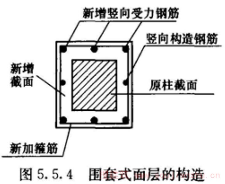 通过外加钢筋混凝土面层或钢筋网砂浆面层,以提高原构件承载力和刚度的一种加固法。