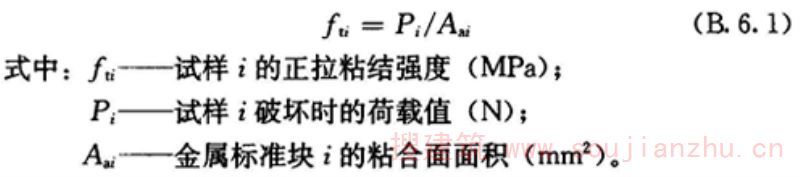 B.6.1 正拉粘结强度应按下式进行计算: