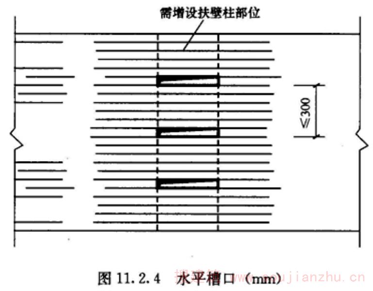 沿砌体墙长度方向每隔一定距离将局部墙体加厚形成墙带垛加劲墙体的加固法。