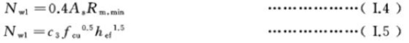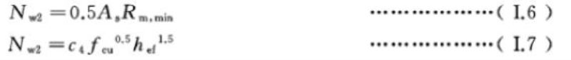 I.3.4 表3中试验项目8为锚栓钢材破坏时N w2 按式(I.6)计算;试验项目8为其他破坏形式时N w2 按式(I.7)计算: