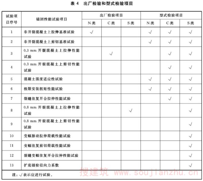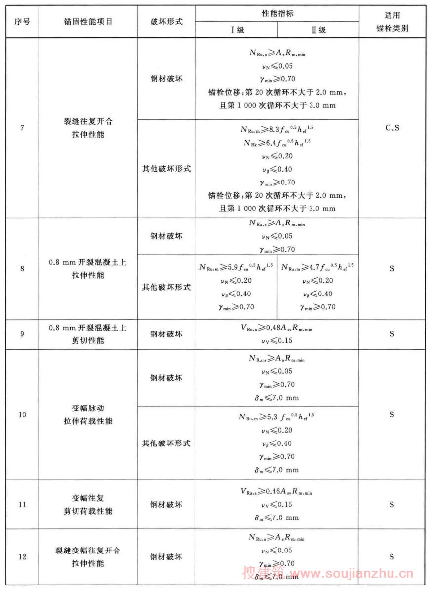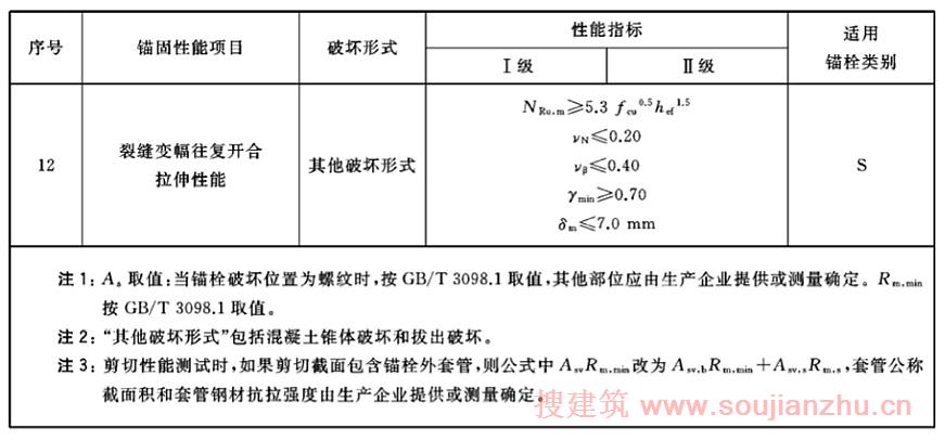 ——完善了锚固性能要求,对不同类别的锚栓提出不同的锚固性能要求,见表2;增加了极限安装扭矩性能要求,见表2;删除了长期荷载性能要求;修改了抗震性能要求,见表3;