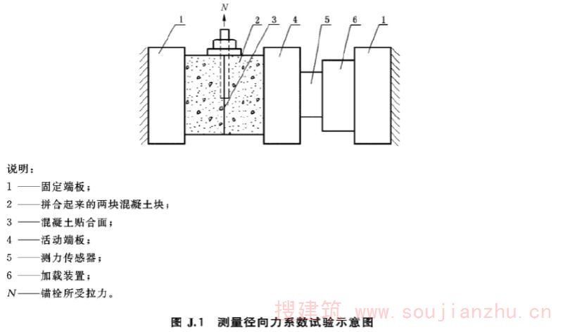J.4.1 将两块端面平整的混凝土块装入试验框架内,施加足够的预压力保证安装锚栓过程中贴合面缝隙宽度不变。