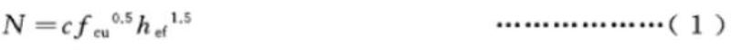 F u,1 ——混凝土抗压强度为? cu,1 的锚栓承载力实测值,单位为牛(N);