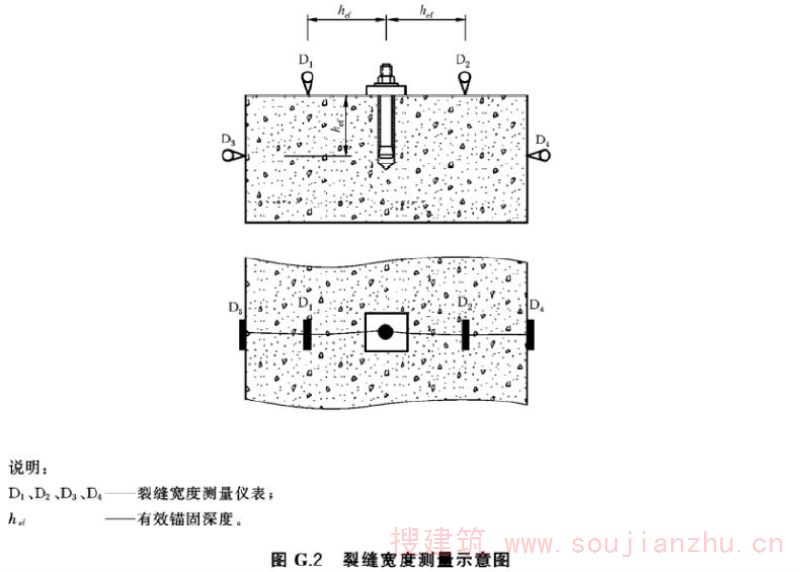 I.3.5 循环过程连续记录裂缝宽度、锚栓位移和拉伸荷载变化情况。记录裂缝宽度上限为0.5mm循环的最后一次循环(即第45次循环),当△ω等于0.5mm时锚栓的位移δ m 。