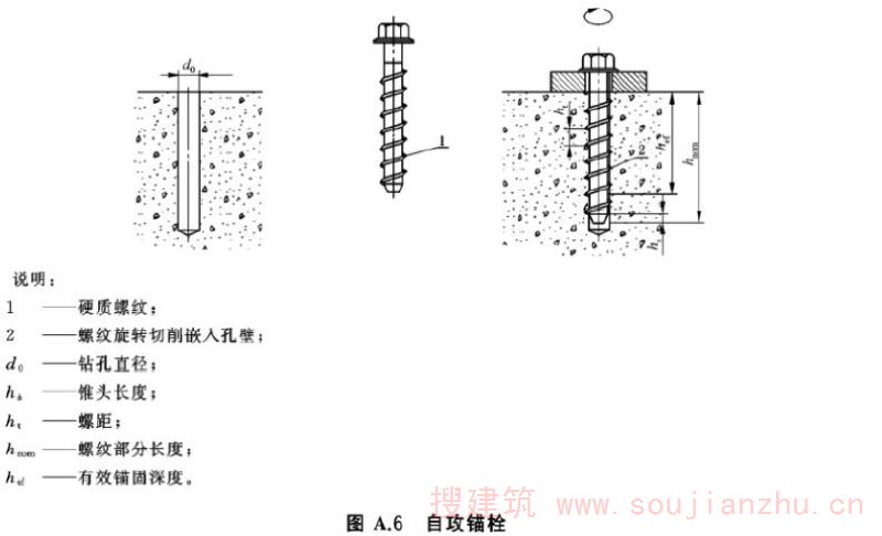 在拧入钻孔过程中通过自带硬质螺纹切削嵌入孔壁的锚栓。参见附录A图A.6。