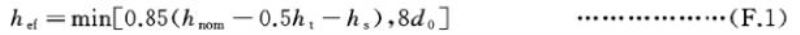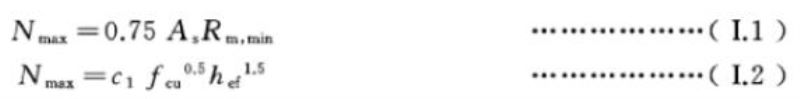 I.1.5 表3中试验项目8为锚栓钢材破坏时,上限荷载按式(I.1)计算;试验项目8为其他破坏形式时,上限荷载按式(I.2)计算: