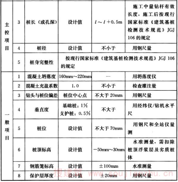 6.3.1 施工过程中应进行下列检查,质量控制偏差应符合本标准表6.1.4-2的规定。