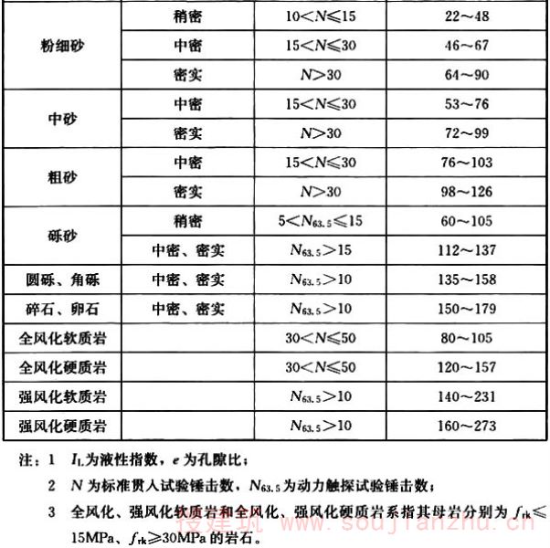 3 应选择低压缩性土层作为桩端持力层。桩端全截面进入持力层的深度,对于黏性土、粉土层不宜小于2.0倍桩径;砂土层不宜小于1.5倍桩径;碎石类土层不宜小于1.0倍桩径;对全风化岩层不宜小于1.5倍桩径;对强风化岩层不宜小于1.0倍桩径。