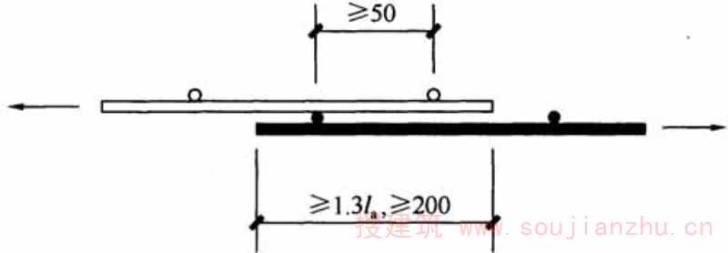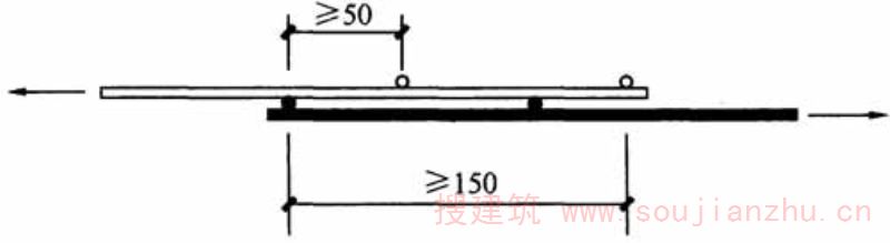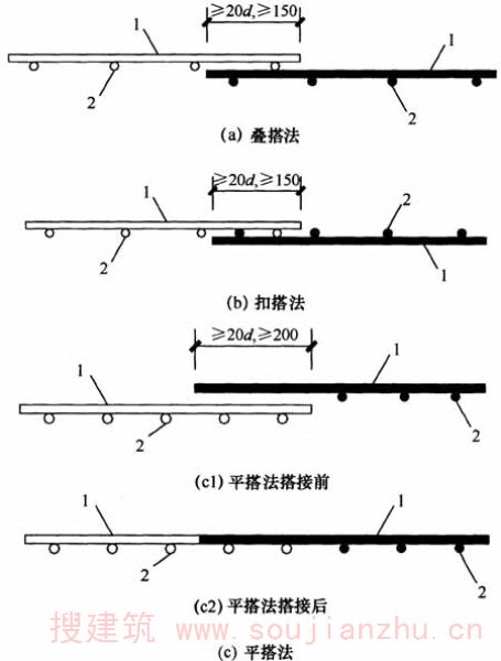 一张焊接网叠在另一张焊接网上的搭接方法。