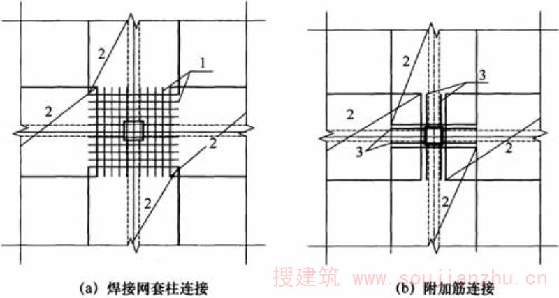 预制焊接钢筋骨架作梁、柱的箍筋在欧美及东南亚地区应用的很普遍。国外在这方面已进行较多的试验研究,积累较多的使用经验,在相关的标准规范中已有规定。 当梁与板整体现浇、不考虑抗震要求且不需计算要求的受压钢筋亦不需进行受扭计算时,可采用带肋钢筋焊接的“U”形开口箍筋笼。在设计开口箍筋笼时,应使竖向钢筋尽量靠近构件的上下边缘,特别是箍筋上端应伸入板内,并尽量靠近板上表面,开口箍筋笼顶部区段必须布置有通常的、连续的焊接网片,以加强梁顶部的约束作用。“U”形开口箍筋笼在国外的预制构件和现浇梁板中均有应用。 焊接钢筋桁架是由一根上弦钢筋、两根下弦钢筋和两侧腹杆钢筋经电阻点焊连接、截面呈倒“V”字形的钢筋焊接骨架。焊接钢筋桁架在国外应用有很长历史,主要用在叠合楼板以及少量叠合板式混凝土剪力墙结构中。近年来,焊接钢筋桁架在国内得到推广应用,已有10多个厂家,生产线达20多条,主要在高速铁路的双块式轨枕中,仅武—广、郑—西两条客运专线的双块式轨枕中共用焊接钢筋桁架400多万根。钢筋桁架用作预制装配式叠合楼板及叠合板式混凝土剪力墙的配筋,在房屋工程中进行了试点应用。提前浇筑预制楼板底部的混凝土,现场浇筑上部混凝土,钢筋桁架使上下层混凝土紧密结合共同受力、省去模板,提高施工速度。有关钢筋桁架的详细要求,见现行国家行业标准《钢筋混凝土用钢筋桁架》YB/T4260的有关规定。 根据国内工程实践,提出了焊接钢筋桁架的3种钢筋牌号。其他钢筋牌号,当有试验依据和工程经验时,可以采用。